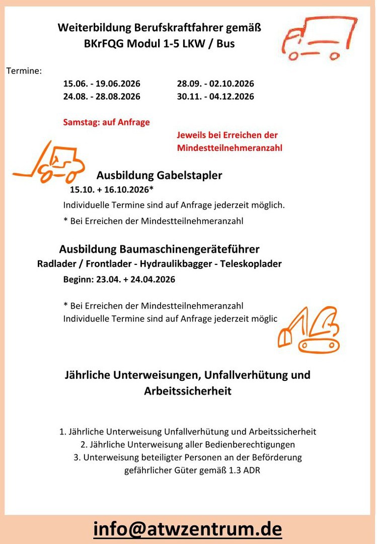 Ausbildung zum Berufskraftfahrer/in Lkw/Bus inkl. Erwerb des Führerscheins, mit und ohne Bildungsgutschein